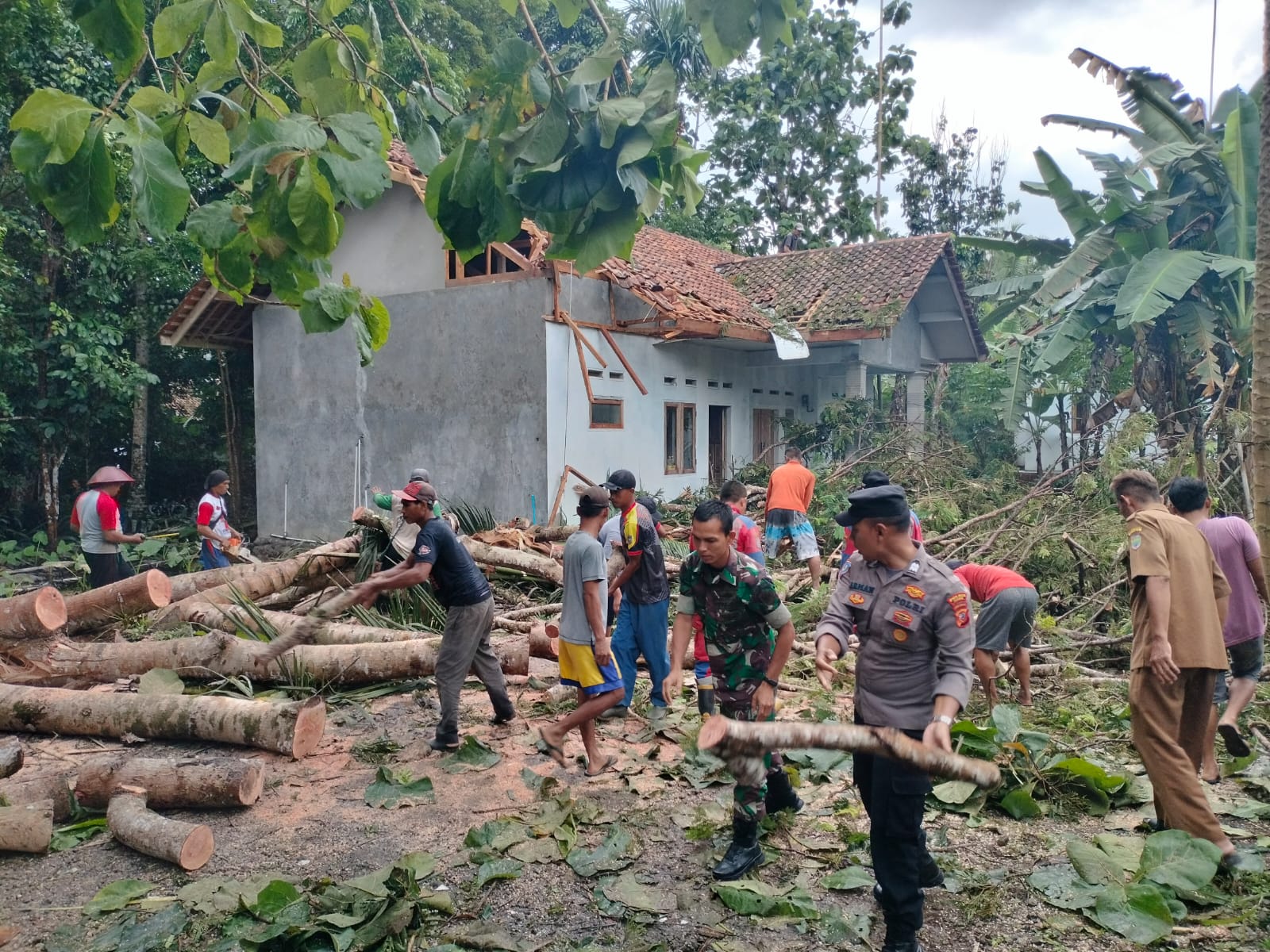Mendapatkan laporan dari masyarakat, Panit II Binmas Aiptu Arman Bukhori, S.H., bersama Briptu Lutfi Aditya segera turun ke lokasi. Setibanya di tempat kejadian, petugas langsung mengecek kondisi bangunan, memastikan keselamatan penghuni rumah, serta mengumpulkan keterangan dari saksi, yaitu perangkat desa Ciulu dan Kadus Pangsor yang juga merupakan pemilik pohon yang tumbang. Polisi turut membantu warga membersihkan bagian rumah yang terdampak agar situasi kembali aman dan tidak menimbulkan risiko tambahan.