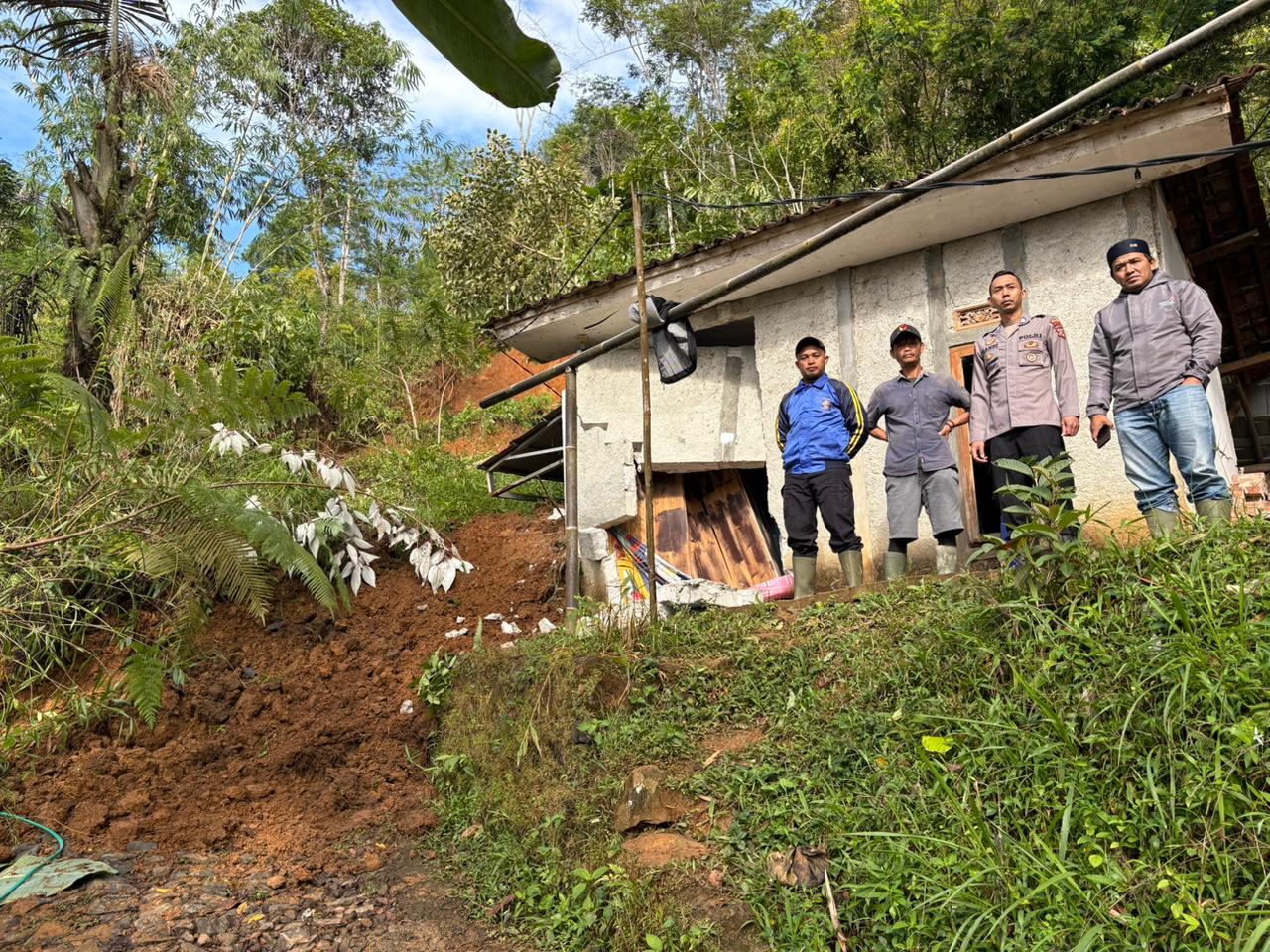 Garut | Polsek Banjarwangi melakukan pengecekan Tempat Kejadian Perkara (TKP) bencana tanah longsor yang menimpa rumah milik Sdri. Engkur (37) di Kampung Cipadung RT 01 RW 06, Desa Bojong, Kecamatan Banjarwangi, Kabupaten Garut.
