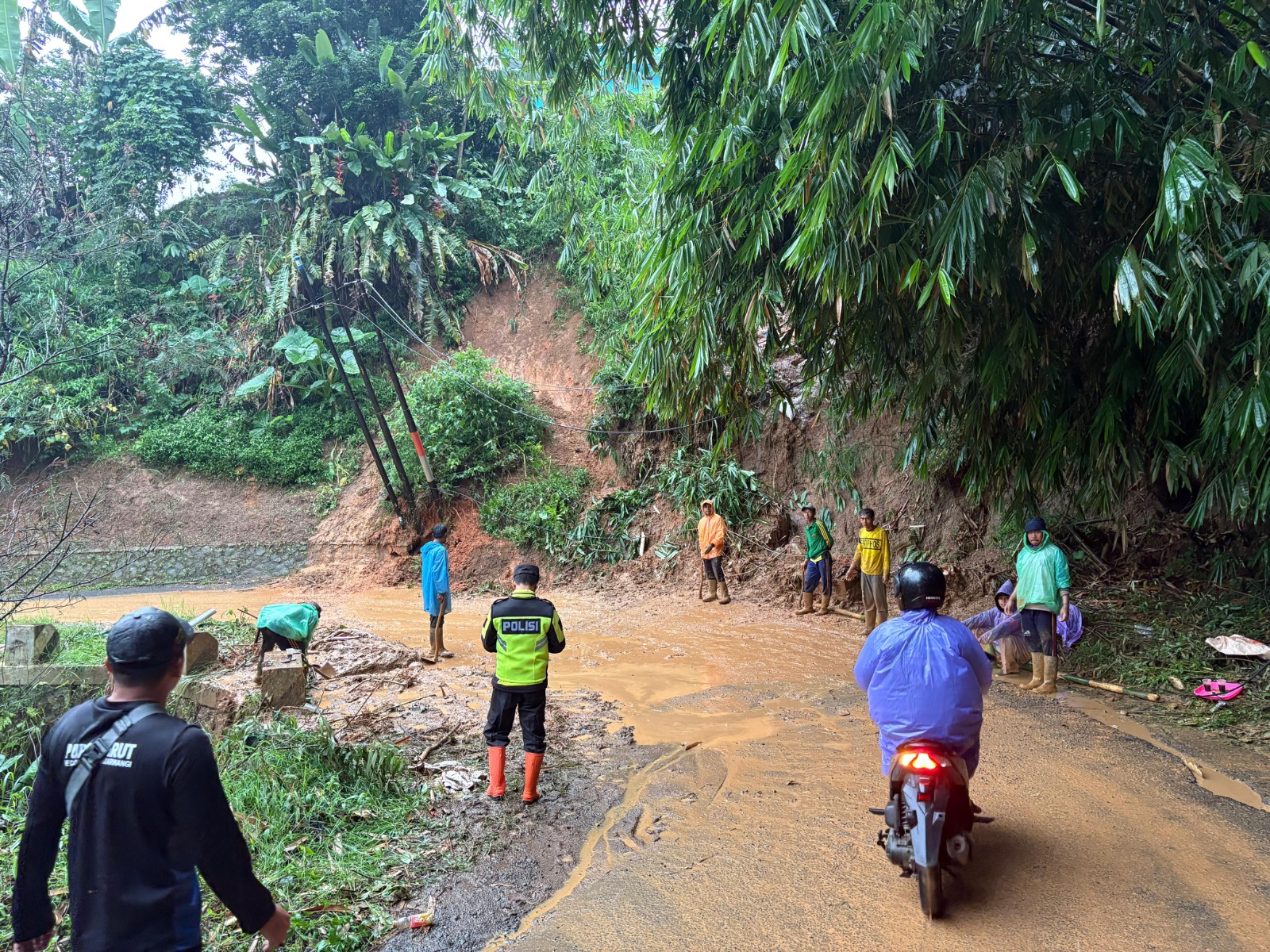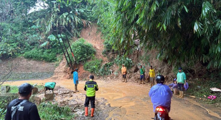 Garut – Personel Polsek Banjarwangi Polres Garut melaksanakan kegiatan patroli mitigasi bencana pasca hujan deras yang mengakibatkan terjadinya longsor dan lumpur menutup badan jalan di wilayah Kecamatan Banjarwangi, Kabupaten Garut, pada Senin (22/09/2025) sore.