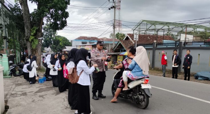 Garut | Dalam rangka meningkatkan kepedulian sosial di bulan suci Ramadan, jajaran Polsek Banyuresmi Polres Garut bersama siswa-siswi SMAN 26 Garut melaksanakan kegiatan pembagian takjil kepada para pengendara yang melintas di Jalan Raya Banyuresmi, Kabupaten Garut.