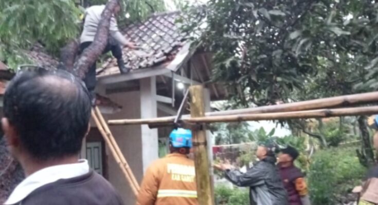 Kapolsek Banyuresmi AKP Usep Heryaman menyampaikan bahwa anggota langsung berkoordinasi dengan perangkat desa dan warga setempat untuk membantu membersihkan material pohon yang menimpa rumah korban.