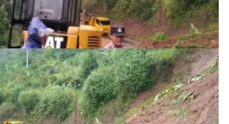 Polsek Caringin melalui anggota bekerjasama dengan Dinas Perhubungan. Kecamatan Caringin, UPT PUPR Kecamatan Caringin, serta warga setempat, bekerja sama untuk membersihkan material tanah yang menutupi jalan.