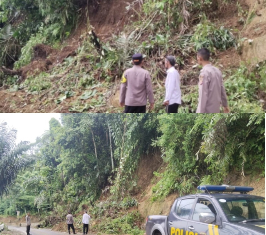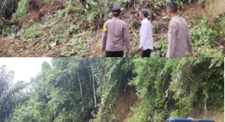 IPDA Indra Koncara menyampaikan bahwa setelah menerima laporan dari warga, pihaknya bersama anggota langsung menuju lokasi untuk melakukan pengecekan dan pengamanan di sekitar titik longsor guna mencegah terjadinya hal-hal yang tidak di inginkan.