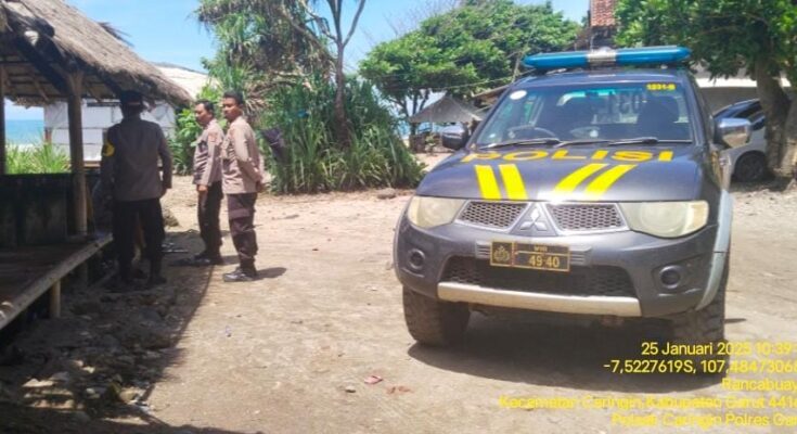 Garut.Jejak-kriminal.com-Polsek Caringin Polres Garut. Dalam rangka mendukung kelancaran, pengunjung objek wisata pantai rancabuaya. Desa purbayani. Kecamatan. Caringin. Kabupaten Garut.”Sabtu (24/1/2025)