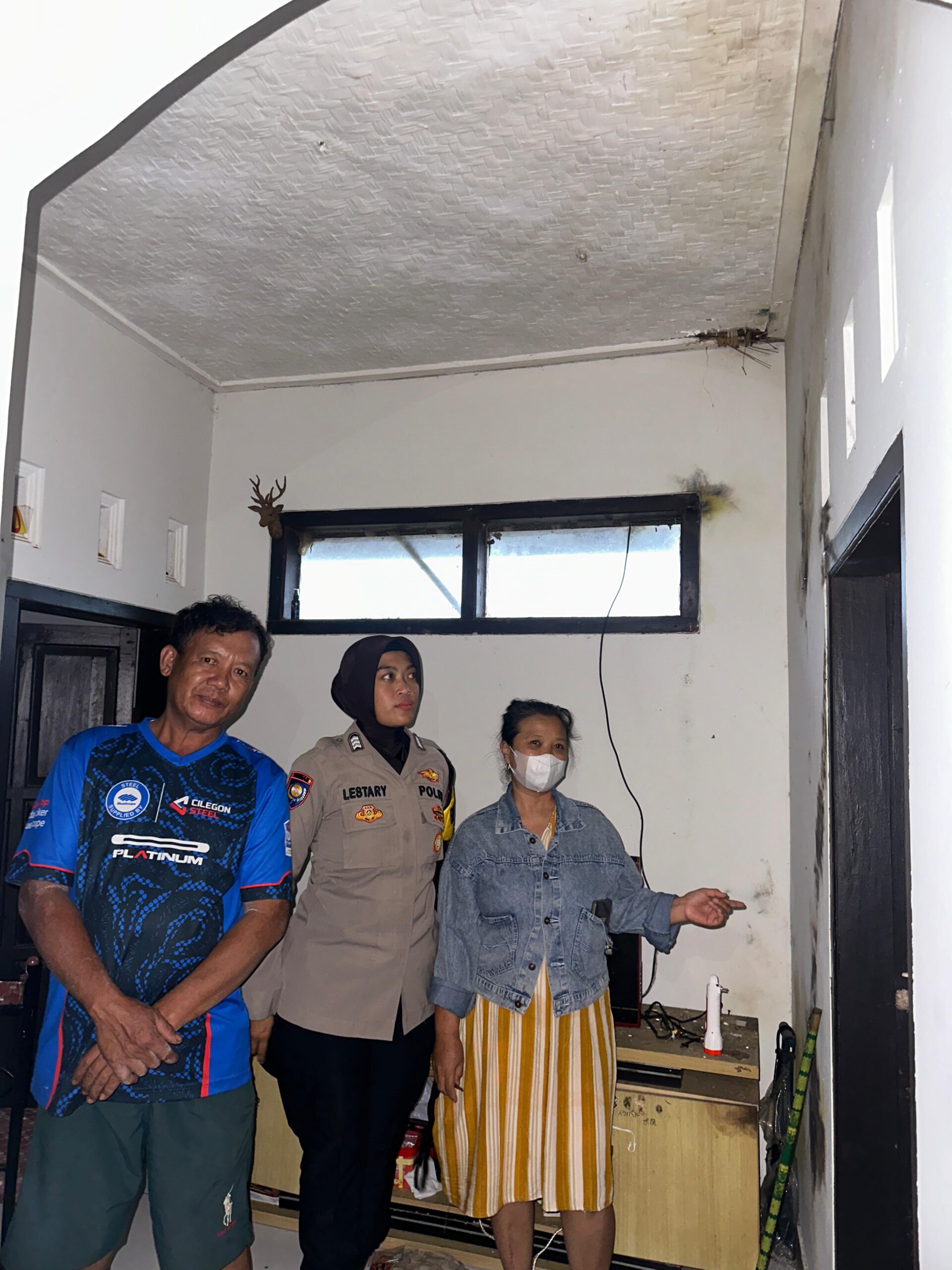 Peristiwa itu terjadi sekira pukul 17.00 WIB, ketika cuaca hujan disertai angin dan petir melanda wilayah Kabupaten Ciamis khususnya Kecamatan Sadananya. Mengetahui hal itu, anggota Bhabinkamtibmas Desa Mekarjadi Brigadir Dini Fuzi Lestary, SH., segera mendatangi lokasi mengecek situasi korban rumah tersambar petir.