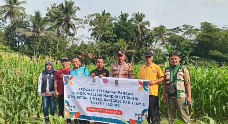 Ciamis – Upaya memperkuat ketahanan pangan di tingkat desa kembali didukung oleh jajaran kepolisian melalui kegiatan monitoring pertumbuhan benih jagung hibrida di wilayah Kecamatan Baregbeg. Polsek Ciamis menurunkan Bhabinkamtibmas Desa Petirhilir untuk memastikan program pertanian yang dikelola oleh Bumdes berjalan baik dan sesuai rencana. Kegiatan tersebut berlangsung pada pukul 08.00 WIB, Jumat (28/11/2025).