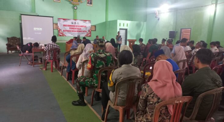 CIAMIS ~ Polsek Ciamis Polres Ciamis Polda Jabar mengikuti kegiatan musyawarah desa khusus pembentukan Koperasi Merah Putih Desa Pusakanagara. Kegiatan itu bertempat di Aula Kantor Desa Pusakanagara, Kecamatan Baregbeg, Kabupaten Ciamis, Jawa Barat, Sabtu (17/5/2025).