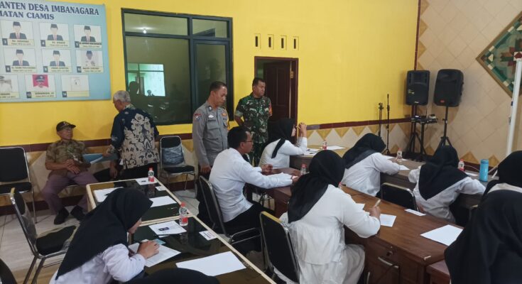Ciamis — Upaya menjaga situasi kamtibmas yang kondusif terus dilakukan Polsek Ciamis Polres Ciamis melalui kehadiran langsung dalam berbagai kegiatan masyarakat, termasuk dalam proses seleksi penjaringan dan penyaringan perangkat desa. Polsek Ciamis menurunkan personel Bhabinkamtibmas untuk mengawal kegiatan seleksi perangkat Desa Imbanagara formasi Seksi Pemerintahan Desa yang digelar di Aula Balai Desa Imbanagara, Kecamatan Ciamis, Kabupaten Ciamis, pada Kamis (18/09/2025).