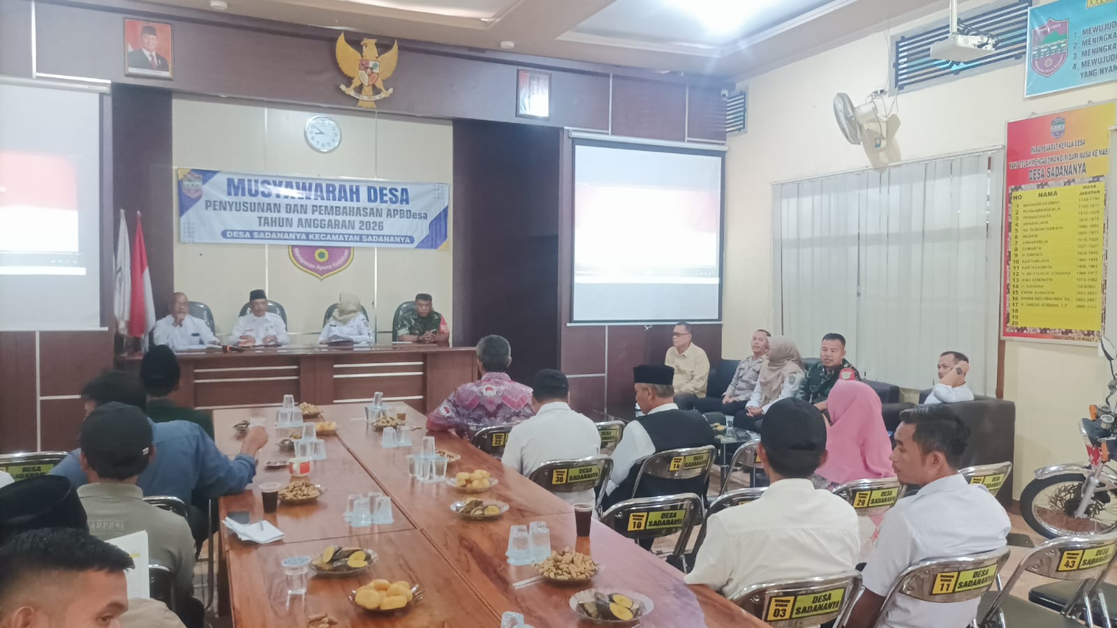 Musyawarah Desa pembahasan APBDesa Tahun Anggaran 2026 tersebut dihadiri oleh berbagai unsur pemerintahan dan masyarakat, di antaranya Camat Sadananya, Danposramil Sadananya, Kepala Desa Sadananya, Ketua dan perangkat BPD, Ketua MUI, Bhabinkamtibmas, Babinsa, Ketua BUMDes, Ketua LPM, perangkat desa, para kepala dusun, serta tokoh masyarakat dan tokoh agama. Seluruh rangkaian kegiatan berlangsung dengan suasana musyawarah yang penuh kebersamaan dan partisipatif.
