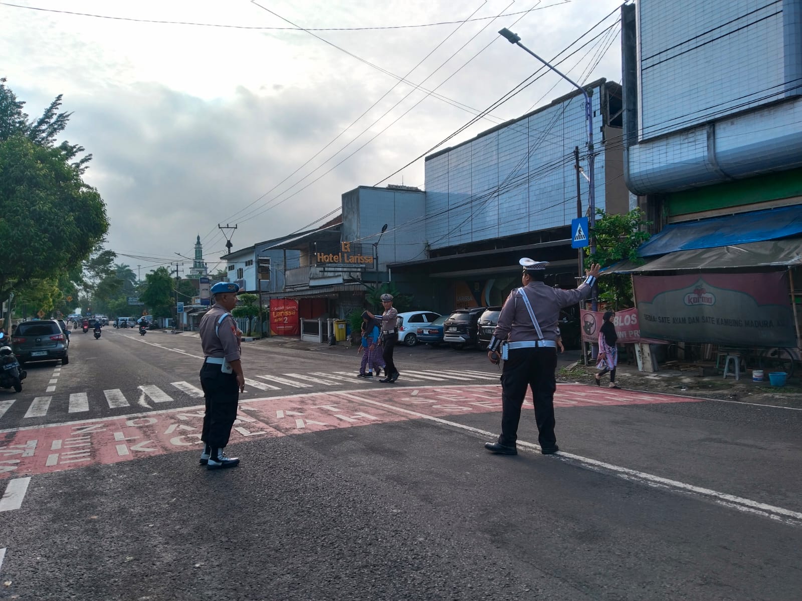 Pengaturan lalu lintas dilakukan oleh Aiptu Didin S. SH dan Aipda Aris Henji A yang hadir langsung di lokasi untuk membantu kelancaran arus kendaraan serta memberikan perlindungan bagi warga dan pelajar yang hendak menyeberang. Kehadiran petugas pada jam keberangkatan sekolah dinilai sangat krusial mengingat tingginya mobilitas masyarakat di sekitar kawasan pendidikan tersebut.