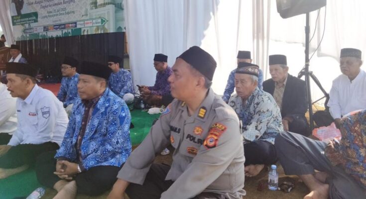 CIAMIS ~ Polsek Ciamis Polres Ciamis Polda Jabar mengikuti kegiatan pengajian bulanan bersama masyarakat. Pengajian bulanan ini digelar di Lapangan Kayujaran, Desa Saguling, Kecamatan Baregbeg, Kabupaten Ciamis, Jawa Barat, Rabu (23/7/2025).