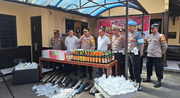 “Dalam operasi ini, kami berhasil mengamankan 100 kantong plastik minuman keras oplosan, 68 botol miras oplosan, 90 botol minuman keras berbagai merek, serta 5 pack minuman serbuk berenergi. Selain itu, petugas juga menyita uang hasil penjualan miras sejumlah Rp176.000,” ujar Kompol Cahyadi.