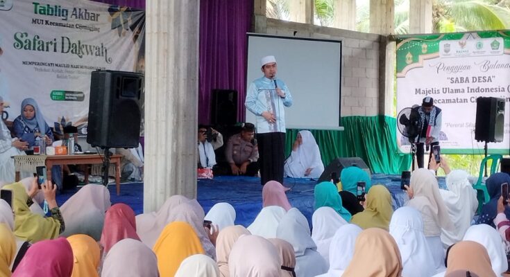 Ciamis – Pada Kamis pagi (11/09/2025), dalam rangka memperingati Maulid Nabi Muhammad SAW 1447 H, ratusan jamaah dari berbagai desa se-Kecamatan Cijeungjing memadati Gedung Dakwah Islam yang berlokasi di Dusun Kaler, RT 005 RW 002, Desa Cijeungjing, Kecamatan Cijeungjing, Kabupaten Ciamis. Acara yang berlangsung khidmat ini diwarnai dengan kehadiran pendakwah kondang KH. Sholeh Mahmoud Nasution atau yang akrab disapa Ustadz Solmed, serta kegiatan penggalangan dana untuk membantu masyarakat Palestina yang tengah dilanda krisis kemanusiaan.