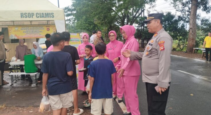 Ciamis – Dalam rangka menyambut bulan suci Ramadan, Polsek Cijeungjing bersama Bhayangkari Ranting Cijeungjing bekerja sama dengan RSOP Cijeungjing Ciamis menggelar kegiatan bakti sosial (Bansos) berupa pembagian takjil gratis dan pemeriksaan kesehatan terbatas bagi masyarakat yang tengah ngabuburit. Kegiatan ini berlangsung pada Jumat (07/03/2025) mulai pukul 16.30 WIB hingga selesai di halaman Kantor Polsek Cijeungjing.