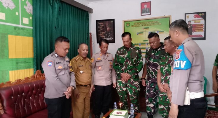 Ciamis – Semangat kebersamaan dan sinergitas antara TNI-Polri kembali terlihat dalam momentum peringatan Hari Ulang Tahun ke-80 Tentara Nasional Indonesia (TNI). Jajaran Muspika Kecamatan Cijeungjing mendatangi Markas Koramil Cijeungjing untuk memberikan tumpeng serta ucapan selamat ulang tahun kepada jajaran TNI. Acara ini berlangsung pada Senin siang (06/10/2025).