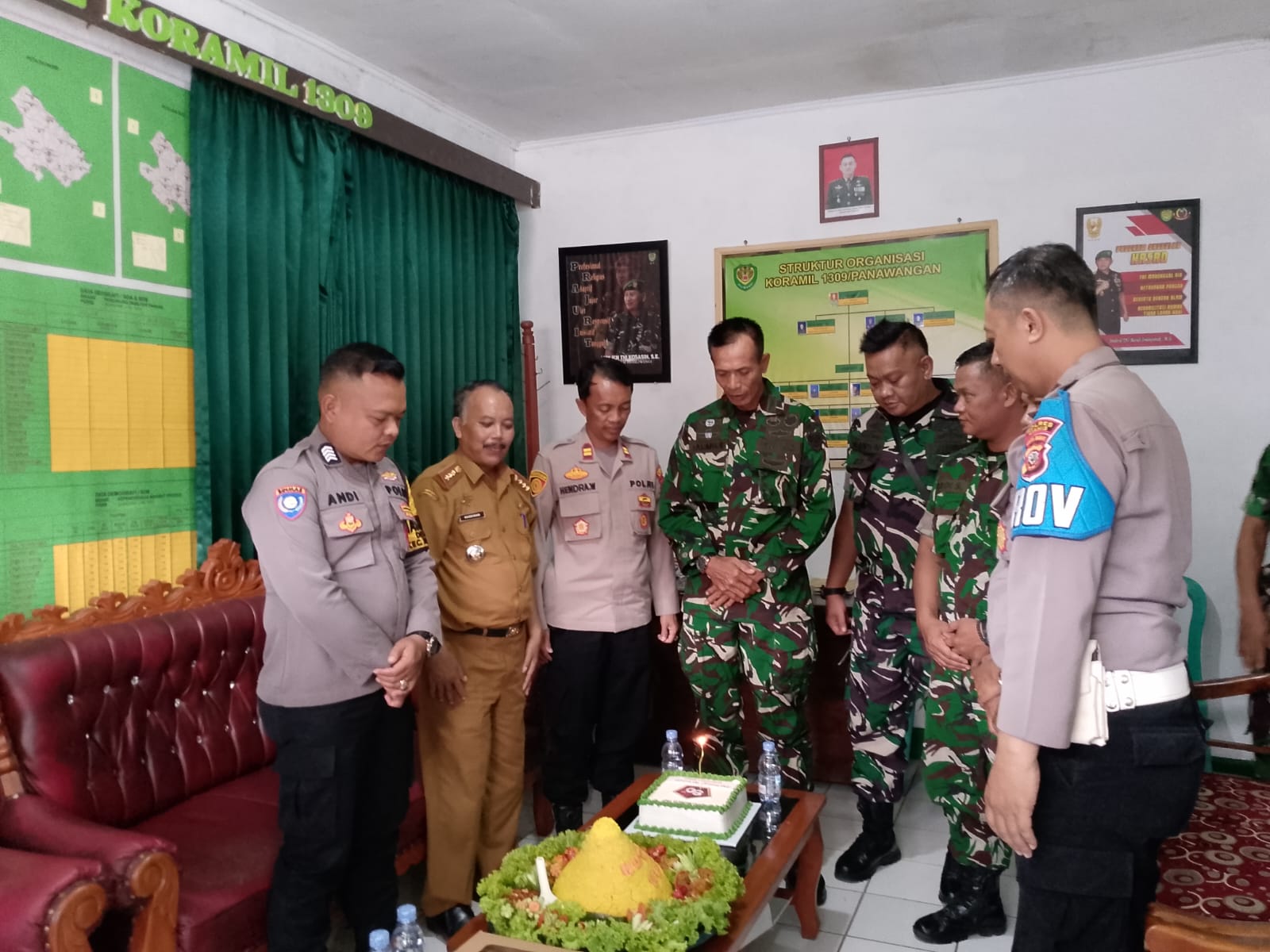 Ciamis – Semangat kebersamaan dan sinergitas antara TNI-Polri kembali terlihat dalam momentum peringatan Hari Ulang Tahun ke-80 Tentara Nasional Indonesia (TNI). Jajaran Muspika Kecamatan Cijeungjing mendatangi Markas Koramil Cijeungjing untuk memberikan tumpeng serta ucapan selamat ulang tahun kepada jajaran TNI. Acara ini berlangsung pada Senin siang (06/10/2025).