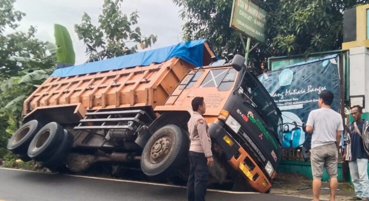 Garut | Polsek Cikelet Polres Garut melaksanakan evakuasi terhadap satu unit kendaraan truk Mitsubishi Fuso No. Pol Z 9268 DC yang mengalami kecelakaan tunggal pada Sabtu pagi, (22/11/2025).
