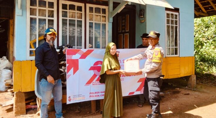 Kapolsek Cikelet IPTU Aktas Komalsyah.,S.H. bersama Anggota memberikan bantuan paket sembako, untuk kepada yang kurang mampu, kegiatan dalam rangka HUT bhayangkara yang ke 79 tahun 2025.
