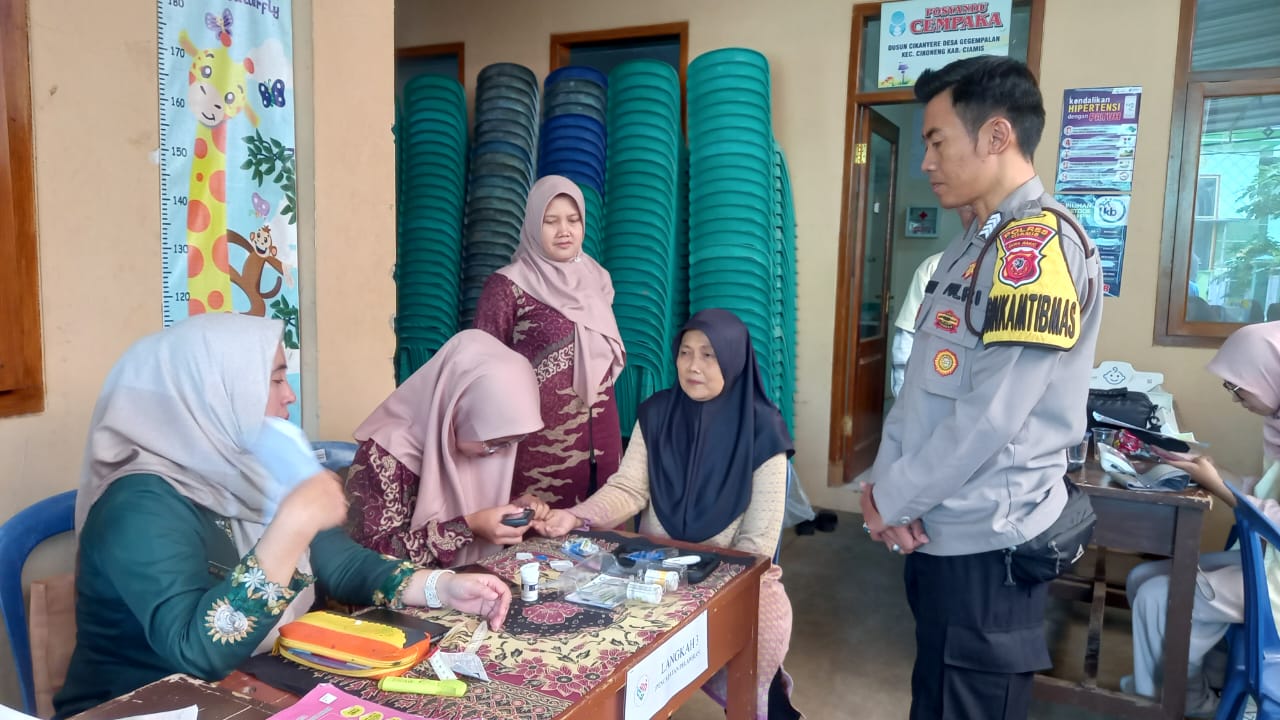 Ciamis – Kepolisian Resor Ciamis kembali menunjukkan komitmennya dalam menjaga keamanan dan mendukung kegiatan sosial kemasyarakatan, khususnya di bidang kesehatan masyarakat. Bhabinkamtibmas Desa Gegempalan Bripka Hendi Suharyadi hadir dan melaksanakan kegiatan monitoring pelaksanaan pemeriksaan tensi darah dan gula darah di Posyandu Cempaka, Dusun Cikanyere RT 002 RW 012, Desa Gegempalan, Kecamatan Cikoneng, Kabupaten Ciamis, pada Jumat (10/10/2025).