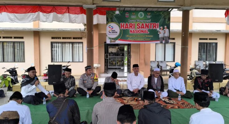 Ciamis – Dalam rangka mempererat sinergi antara aparat kepolisian dan masyarakat, Polsek Cikoneng Polres Ciamis turut serta dalam kegiatan syukuran Hari Santri Nasional tahun 2025 tingkat Desa Nasol, Kecamatan Cikoneng, Kabupaten Ciamis. Kegiatan yang berlangsung di Balai Desa Nasol ini dihadiri langsung oleh Bhabinkamtibmas Desa Nasol, Bripka Apiet, sebagai bagian dari upaya Polri dalam menjaga keamanan dan ketertiban masyarakat sekaligus mempererat hubungan dengan elemen keagamaan di wilayah binaannya. Acara digelar dengan penuh khidmat pada hari Rabu (22/10/2025).