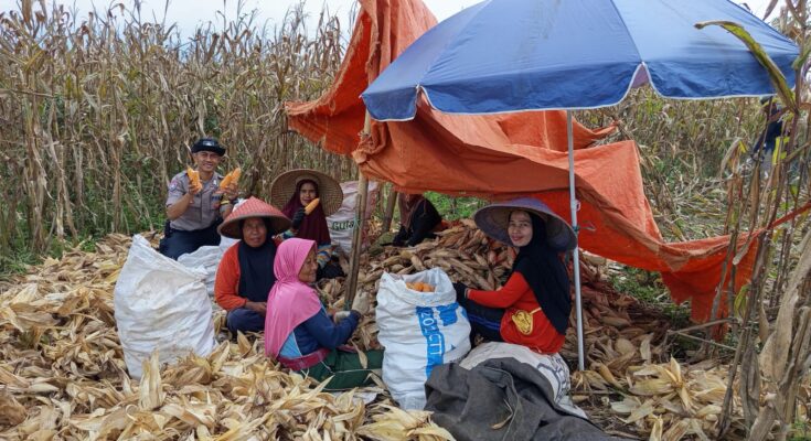 Ciamis — Kepolisian Resor Ciamis melalui jajaran Polsek Cikoneng menunjukkan peran aktifnya dalam mendukung ketahanan pangan dengan turut mengawal serta memantau kegiatan panen jagung di lahan Lahan Belajar Siswa (LBS) yang berlokasi di Dusun Gareumpay, Desa Gegempalan, Kecamatan Cikoneng, Kabupaten Ciamis, pada Sabtu (13/09/2025).