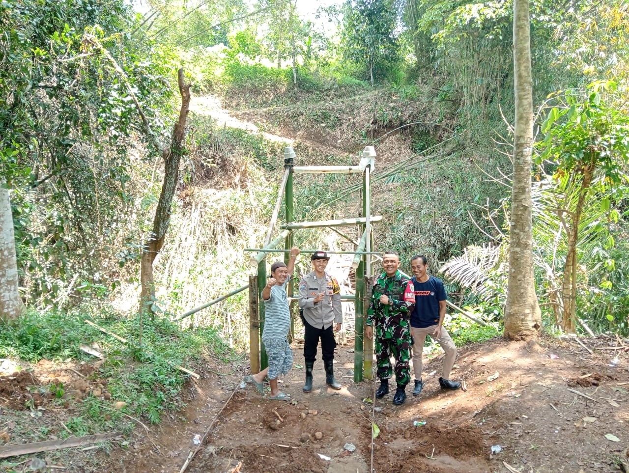 Ciamis – Kepolisian Resor Ciamis melalui jajaran Polsek Cikoneng terus menunjukkan peran aktifnya dalam mendukung pembangunan di wilayah pedesaan. Salah satu bentuk nyata komitmen tersebut diwujudkan melalui kegiatan monitoring pembangunan jembatan penghubung antara Dusun Bojongsari Desa Gegempalan dengan Desa Cimari, yang dilakukan oleh Bhabinkamtibmas Desa Gegempalan Bripka Hendi Suharyadi bersama Babinsa Desa Gegempalan Sertu Prayitno pada Senin (13/10/2025).