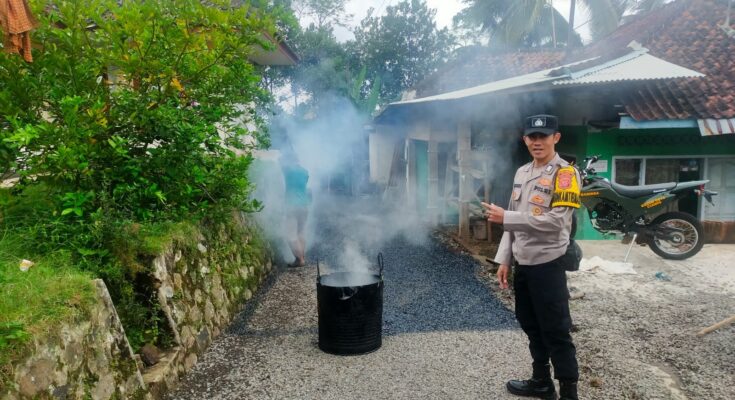 CIAMIS ~ Polsek Cikoneng Polres Ciamis Polda Jabar mendatangi masyarakat yang sedang melaksanakan pengaspalan Jalan Pondok Pesantren Nurul Huda. Pengaspalan ini berlangsung di Ponpes Nurul Huda, Dusun Gereumpay, Desa Gegempalan, Kecamatan Cikoneng, Kabupaten Ciamis, Jawa Barat, Jumat (4/7/2025).