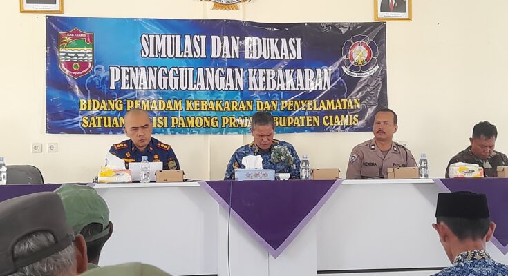 Ciamis – Dalam rangka meningkatkan kesadaran dan kesiapsiagaan masyarakat terhadap bencana kebakaran, Polsek Cimaragas Polres Ciamis turut serta mendukung kegiatan Sosialisasi Pencegahan dan Penanggulangan Bencana Kebakaran yang dilaksanakan di Aula Kecamatan Cidolog, Kabupaten Ciamis, pada Kamis (17/07/2025).