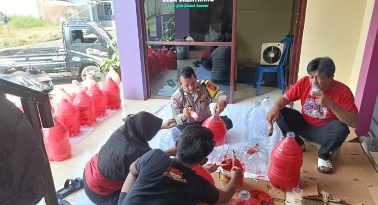 Dalam kegiatan tersebut, Bhabinkamtibmas Desa Jalatrang Aiptu Agus Hendra bersama Kepala Desa dan perangkat desa melaksanakan pengecatan galon air mineral serta penataan pekarangan kantor desa sebagai bagian dari penilaian lomba P2B yang digelar oleh Mabes Polri dalam rangka menyambut Hari Bhayangkara ke-79 tahun 2025.