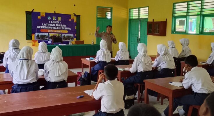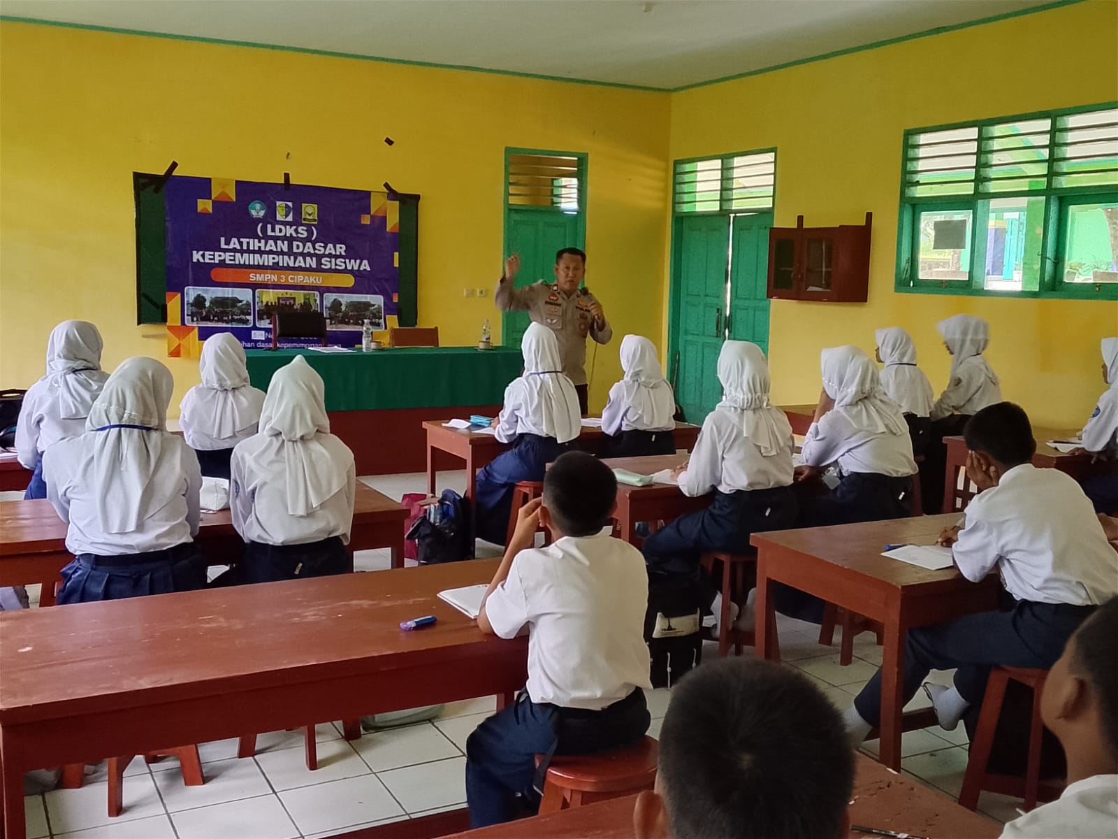 Ciamis – Kepolisian Sektor (Polsek) Cipaku Polres Ciamis terus menunjukkan komitmennya dalam membangun generasi muda yang berkarakter dan berdisiplin tinggi melalui kegiatan pembinaan di lingkungan pendidikan. Salah satu bentuk nyata dari komitmen tersebut diwujudkan dengan kehadiran personel Polsek Cipaku yang menjadi narasumber dalam kegiatan pembekalan materi kepemimpinan kepada siswa-siswi SMPN 3 Cipaku, Desa Mekarsari, Kecamatan Cipaku, Kabupaten Ciamis. Kegiatan ini berlangsung pada Senin (03/11/2025).