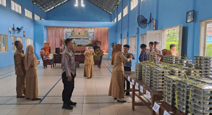 Ciamis – Dalam rangka mendukung peningkatan kesehatan dan konsentrasi belajar siswa, Polsek Cisaga melalui Ps. Kanit Binmas AIPDA Kusnendi melaksanakan kegiatan monitoring Program Makan Bergizi Gratis (MBG) di SMPN 1 Cisaga, pada Selasa (10/6/2025), pukul 10.30 WIB hingga selesai.