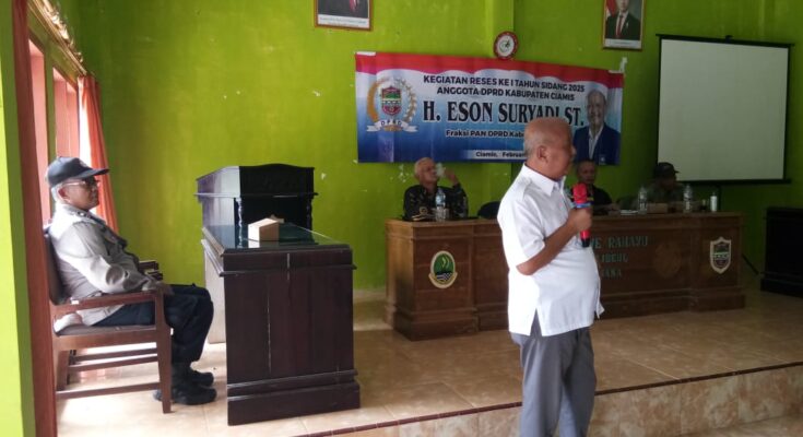 Monitoring ini dilaksanakan oleh anggota Anggota Polsek Cisaga Polres Ciamis Polda Jabar. Kegiatan ini merupakan reses Anggota DPRD Kabupaten Ciamis H. Eson Suryadi dari Fraksi PAN.