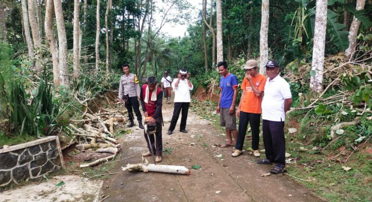 Kegiatan yang dimulai sekitar pukul 10.00 WIB tersebut dilaksanakan oleh Bhabinkamtibmas Desa Tanjungjaya Aipda Ali Mukti dengan menyambangi tokoh masyarakat setempat yang tengah melaksanakan penebangan pohon-pohon tinggi di sekitar pemukiman warga. Langkah ini dilakukan sebagai upaya preventif guna mengantisipasi terjadinya bencana alam berupa pohon tumbang yang dapat membahayakan keselamatan warga, khususnya saat terjadi hujan deras dan angin kencang.