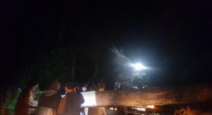 Menurutnya, pohon tumbang tersebut disebabkan oleh hujan yang disertai angin kencang yang melanda wilayah tersebut, sehingga menyebabkan pohon jenis kaliptus roboh dan menutup badan jalan.