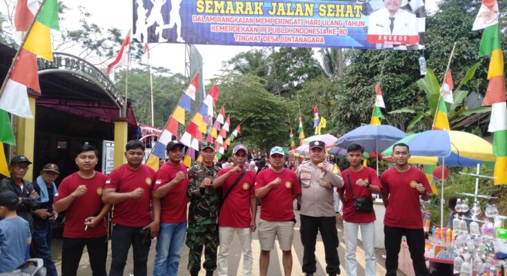 Kegiatan pengamanan ini dilakukan oleh Bhabinkamtibmas Desa Cintanagara, Aiptu Dedi, bersama Babinsa Koptu Dani, guna memastikan seluruh rangkaian acara berjalan aman dan lancar. Jalan sehat ini diikuti oleh unsur pemerintahan desa, perangkat BPD, tokoh masyarakat, Ketua Karang Taruna, serta ratusan warga setempat.