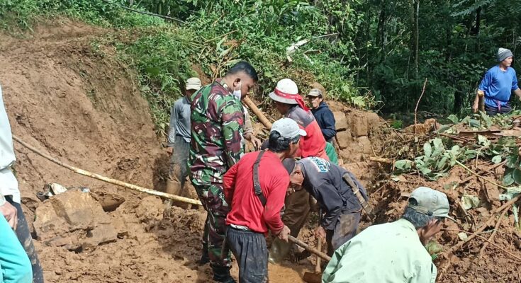 Ciamis – Personel Polsek Kawali Polres Ciamis bergerak cepat meninjau lokasi kejadian tanah longsor yang terjadi di wilayah Dusun Cikawung RT 32/13 Desa Sindangsari, Kecamatan Kawali, Kabupaten Ciamis. Longsor tersebut menimpa sebagian kandang ayam milik warga setempat bernama Ust Aher, dengan ukuran sekitar 10×4 meter. Peristiwa ini terjadi setelah hujan deras mengguyur wilayah Kawali pada Kamis sore. Kegiatan peninjauan dilakukan oleh jajaran Polsek Kawali pada Jumat (07/11/2025).