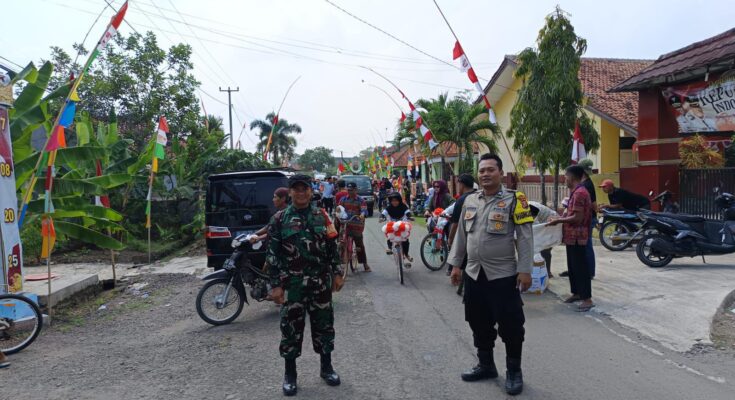 Untuk memastikan kelancaran acara, Bhabinkamtibmas Desa Cintaratu, Brigadir Diko Pujoko K, S.H., bersama Babinsa Serda Slamet, hadir langsung memberikan pengawalan dan pengamanan. Kehadiran aparat di lapangan tidak hanya menjaga arus lalu lintas tetap lancar, tetapi juga memastikan kegiatan berlangsung aman dan tertib hingga selesai.