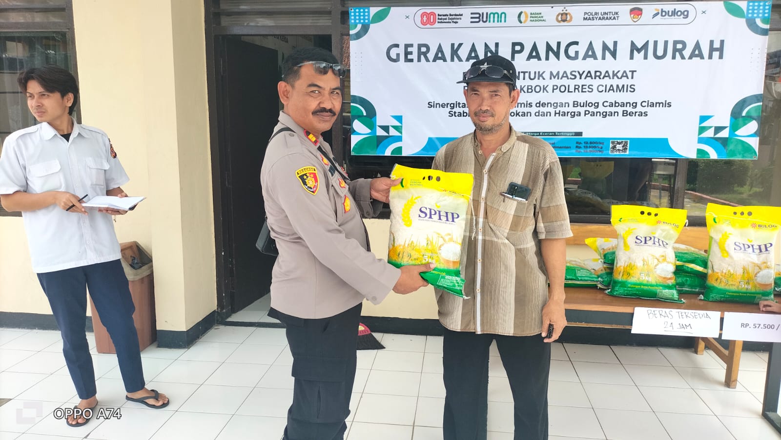 Ciamis – Polsek Lakbok Polres Ciamis kembali menunjukkan kepeduliannya terhadap kebutuhan masyarakat dengan mengawal langsung kegiatan penyaluran sekaligus penjualan beras program Stabilisasi Pasokan dan Harga Pangan (SPHP) yang berlangsung di halaman Kantor Polsek Lakbok, Kabupaten Ciamis, Selasa (26/08/2025).