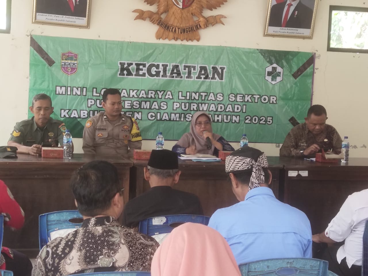 CIAMIS ~ Polsek Lakbok Polres Ciamis Polda Jabar monitoring Lokakarya Mini Lintas Sektor Triwulan II bidang kesehatan. Kegiatan itu dilaksanakan oleh Puskesmas Purwadadi, Desa Purwadadi, Kecamatan Purwadadi, Kabupaten Ciamis, Jawa Barat, Jumat (20/6/2025).