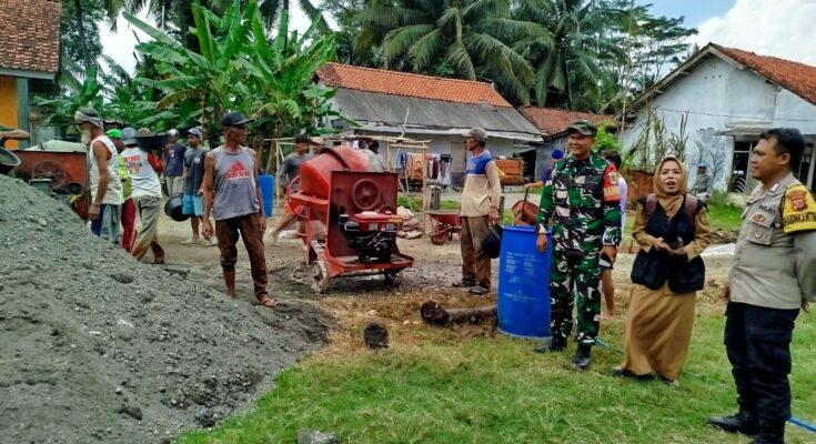 Ciamis — Polsek Lakbok Polres Ciamis bersama TNI melakukan monitoring pembangunan Jalan Usaha Tani (rabat beton) di Dusun Pancalan, RT 002 RW 010, Desa Purwajaya, Kecamatan Lakbok, Kabupaten Ciamis, Senin (11/08/2025).