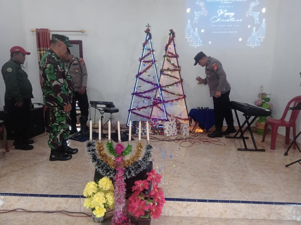 CIAMIS ~ Momen kegiatan peryaaan di Natal 2025, Polres Ciamis Polda Jabar bersiaga melaksanakan pengamanan. Salah satunya dilakukan di Gereja Kristen Kerosulan Indonesia (GKKI), Dusun Citamiang Rt.012 Rw.003 Desa Cintaratu Kecamatan Lakbok, Kabupaten Ciamis, Jawa Barat, Sabtu, 27 Desember 2025, malam.