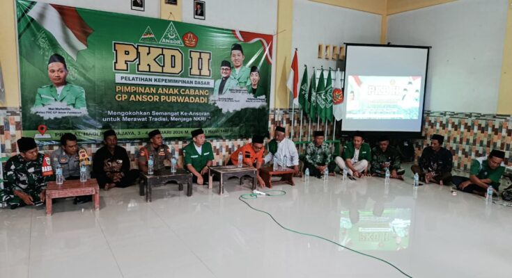 CIAMIS ~ Polsek lakbok Polres Ciamis Polda Jabar memberikan pembinaan dan penyuluhan terhadap para peserta Pendidikan Kepemimpinan Dasar (PKD) Gerakan Pemuda Ansor tingkat Kecamatan Purwadadi. Pendidikan Kepemimpinan Dasar ini berlangsung di Pondok Pesantren Tahfidzul Qur’an Al Hadi, Desa Purwajaya, Kecamatan Purwadadi, Kabupaten Ciamis, Jawa Barat, Sabtu, 3 Januari 2026, kemarin.