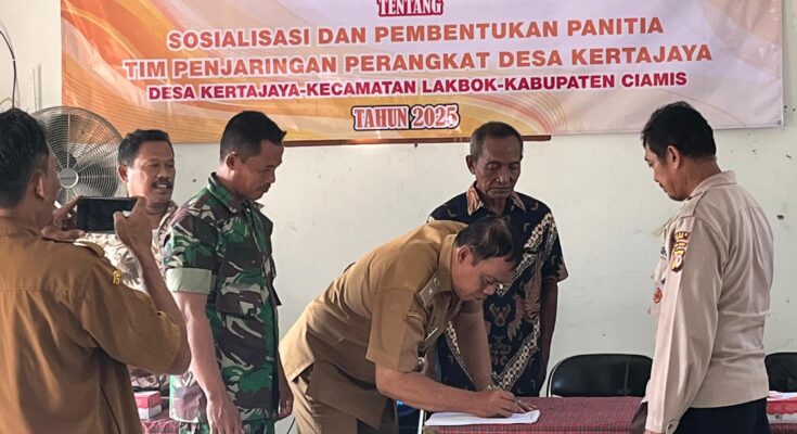 CIAMIS ~ Personel Polsek Lakbok Polres Ciamis Polda Jabar melaksanakan monitoring kegiatan pembentukan panitia seleksi perangkat Desa Kertajaya. Kegiatan tersebut berlangsung di Kantor Desa Kertajaya, Kecamatan Lakbok, Kabupaten Ciamis, Jawa Barat, Selasa (8/7/2025).