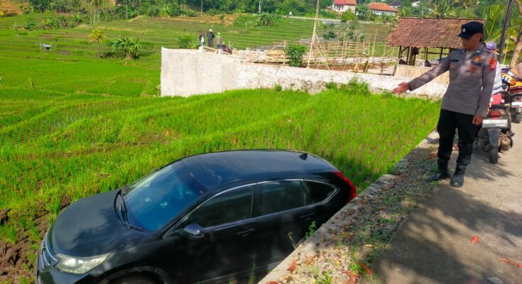 Garut | Polsek Leuwigoong Polres Garut melakukan pengecekan Tempat Kejadian Perkara (TKP) terkait kecelakaan lalu lintas tunggal yang melibatkan satu unit kendaraan Honda CR-V No. Pol D 1750 AAP warna hitam, Sabtu pagi (22/11/2025).