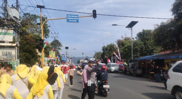 Garut – Dalam rangka menyambut Hari Kemerdekaan Republik Indonesia, jajaran Polsek Limbangan Polres Garut melaksanakan pengamanan dan pengaturan lalu lintas (Kamseltibcarlantas) pada kegiatan jalan santai yang berlangsung di wilayah hukum Polsek Limbangan, Rabu (13/8/2025).