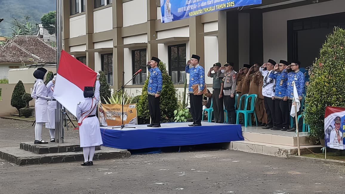 Ciamis – Kepolisian Resor Ciamis melalui Polsek Panjalu turut hadir dalam rangkaian upacara peringatan Hari Guru Nasional, Hari PGRI ke-80, Hari Kesehatan Nasional ke-61, HUT Korpri ke-54, serta Hari Anti Korupsi Sedunia yang digelar di Lapangan Apel SDN 4 Panjalu, Kecamatan Panjalu, Kabupaten Ciamis pada Senin pagi (01/12/2025).