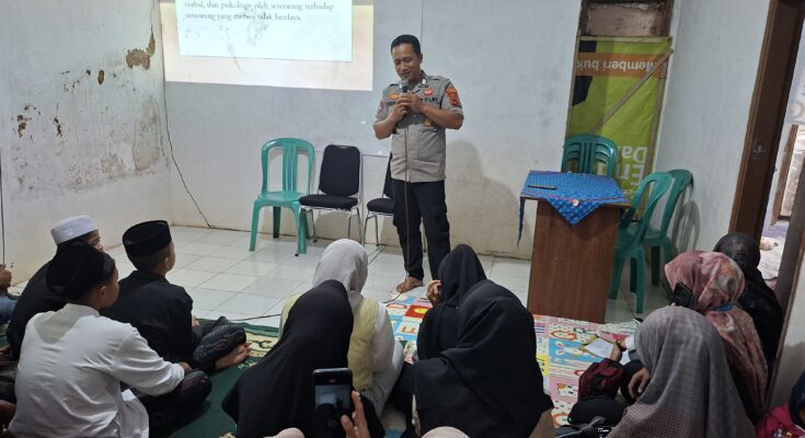 “Bahaya bullying dan dampak terhadap psikologis anak, Belajar dengan rajin, Menghormati orang tua dan guru di sekolah serta Saling menghormati sesama,” ucap AKP Yaya Koswara berpesan kepada para anak di PKBM Tunas Raharja.