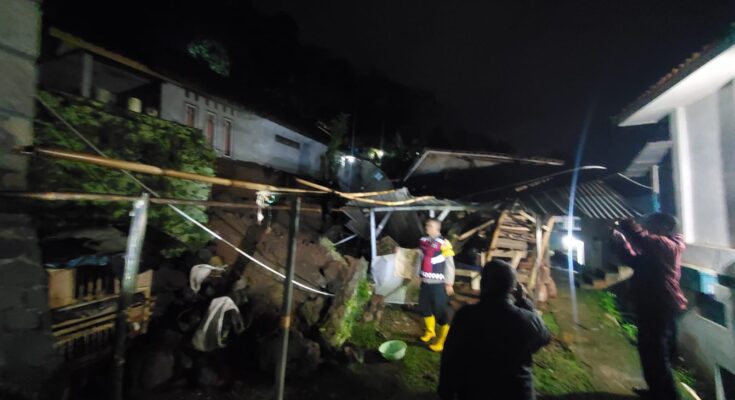 “Diduga akibat curah hujan yang tinggi disertai angin disekitar lokasi kejadian sehingga mengakibatkan tebing yang berada dibelakang rumah setinggi 4 meter longsor menghantam bangunan rumah korban. Sehingga merusak dinding dapur rumah. Diperkirakan korban mengalami kerugian materiil karena dapur yang tertimbun rreruntuhan longsoran tanah sekitar Rp. 15 juta,” kata AKP Yaya Koswara.