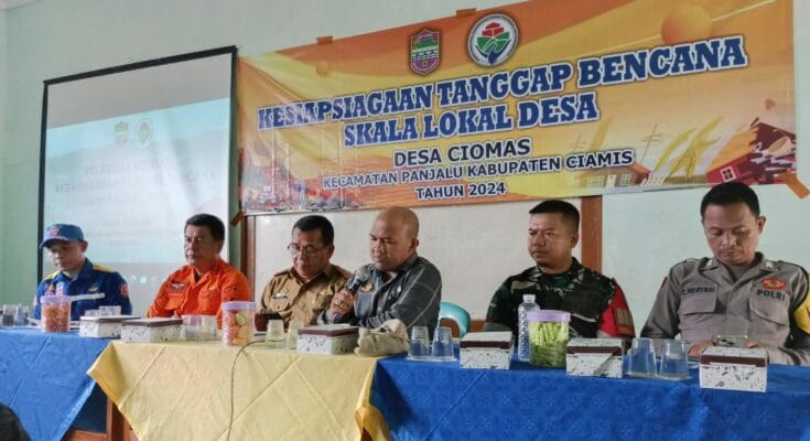 CIAMIS ~ Personel Polsek Panjalu Polres Ciamis Polda Jabar menghadiri acara Kesiapsiagaan Tanggap Bencana Skala Lokal Desa (Mitigasi Bencana) tingkat desa. Acara pembukaan tersebut digelar di Dusun Hanjatan, Desa Ciomas, Kecamatan Panjalu, Kabupaten Ciamis, Jawa Barat, Selasa (19/11/2024).