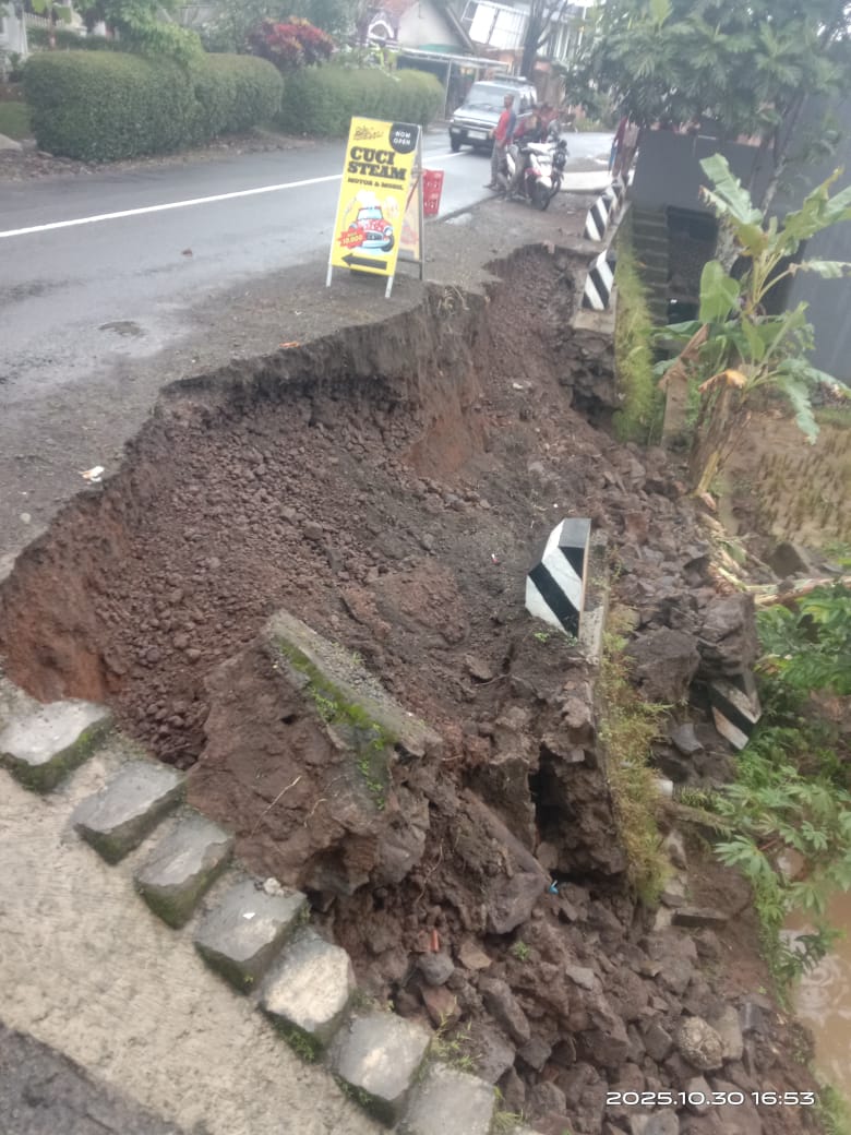 Ciamis – Jajaran Polsek Panjalu Polres Ciamis bergerak cepat menanggapi laporan bencana alam tanah longsor yang terjadi di wilayah Desa Sandingtaman, Kecamatan Panjalu, Kabupaten Ciamis. Kejadian ini terjadi di ruas Jalan Provinsi yang menghubungkan Panjalu–Kawali, tepatnya di Dusun Karoya, di mana tembok penahan tanah (TPT) pada bahu jalan mengalami longsor akibat curah hujan tinggi yang mengguyur sejak siang hari. Insiden tersebut terjadi pada Kamis (30/10/2025).